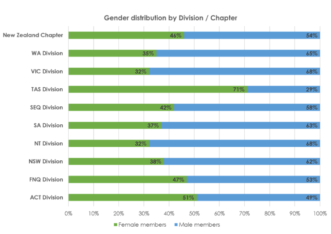 The graph below shows gender distribution by Division / Chapter (as at 7/03/2017).