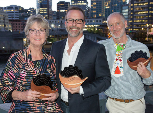 L-R: Di Buchan, Mark Breitfuss and Piers Larcombe with their awards