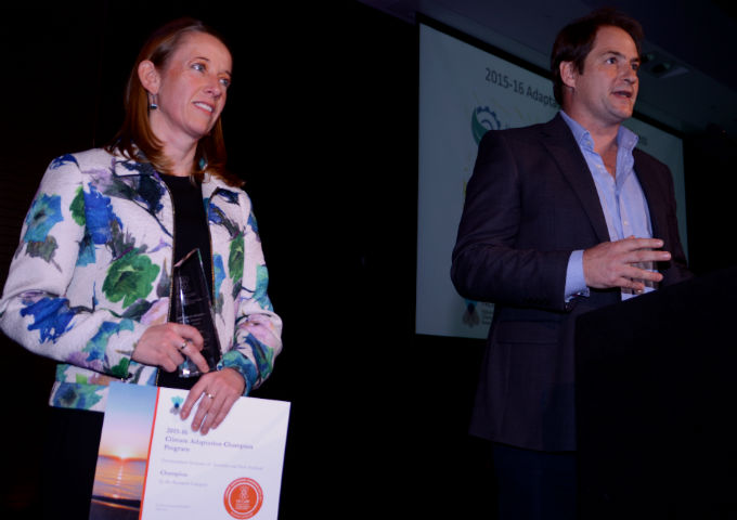 Above: Liz Floyd (EIANZ NSW Division, Learning to Adapt Sub-committee) and Tom Davies (Chair, EIANZ Climate Change SiS) accepting the award