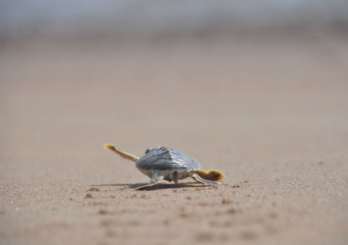 The potential for artificial light from coastal development to disrupt natural hatchling sea-finding behaviour is well known. Turtle hatchlings are disorientated by artificial light, typically either wandering inland towards the lights or crawling along circuitous routes and taking longer to find the sea, both of which increase the chance of mortality. However, this is the first study to demonstrate a negative effect of artificial light-glow, originating from over 15 km away, on hatchling behaviour.