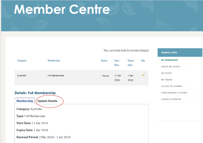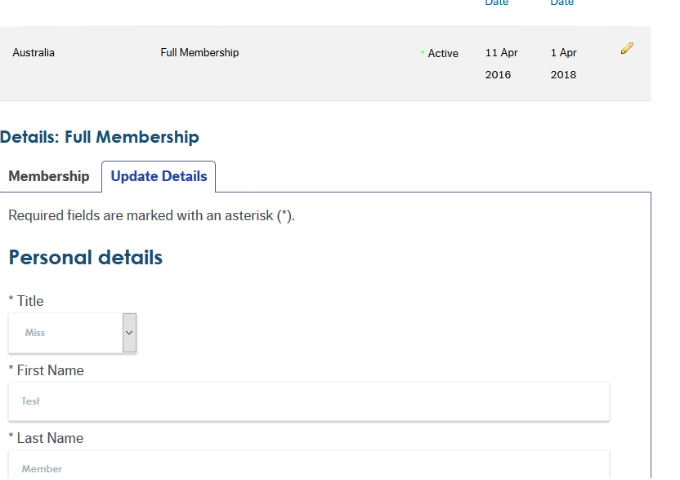 When you’ve selected the ‘Update details’ tab, you will be able to edit the details recorded for your membership. Review the details recorded, amending as necessary.