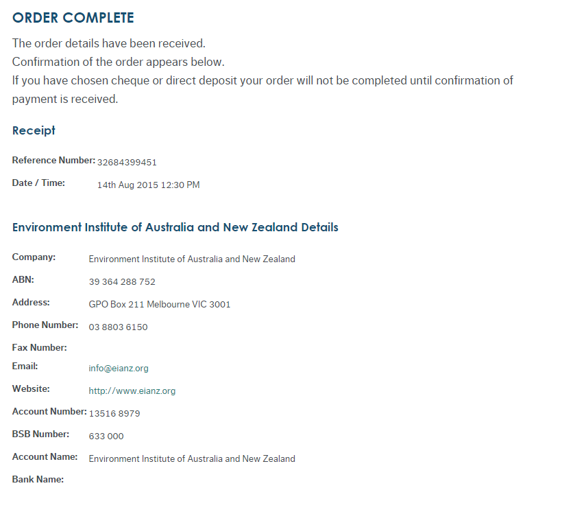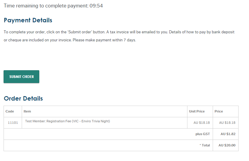 When you click on the “Submit order” button, a Tax Invoice will be automatically emailed to you with instructions on how to make payment by bank deposit or cheque. Please make payment within 7 days. If you chose to pay by credit card, your tax invoice is emailed to you as your receipt. Please keep for your records.