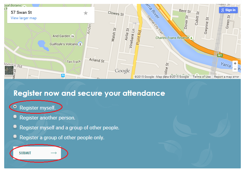 4. Read the details of the event to make sure it is the correct one, and then scroll to the bottom to register either yourself, another person, yourself and a group of other people or a group of other people only then click "Submit"